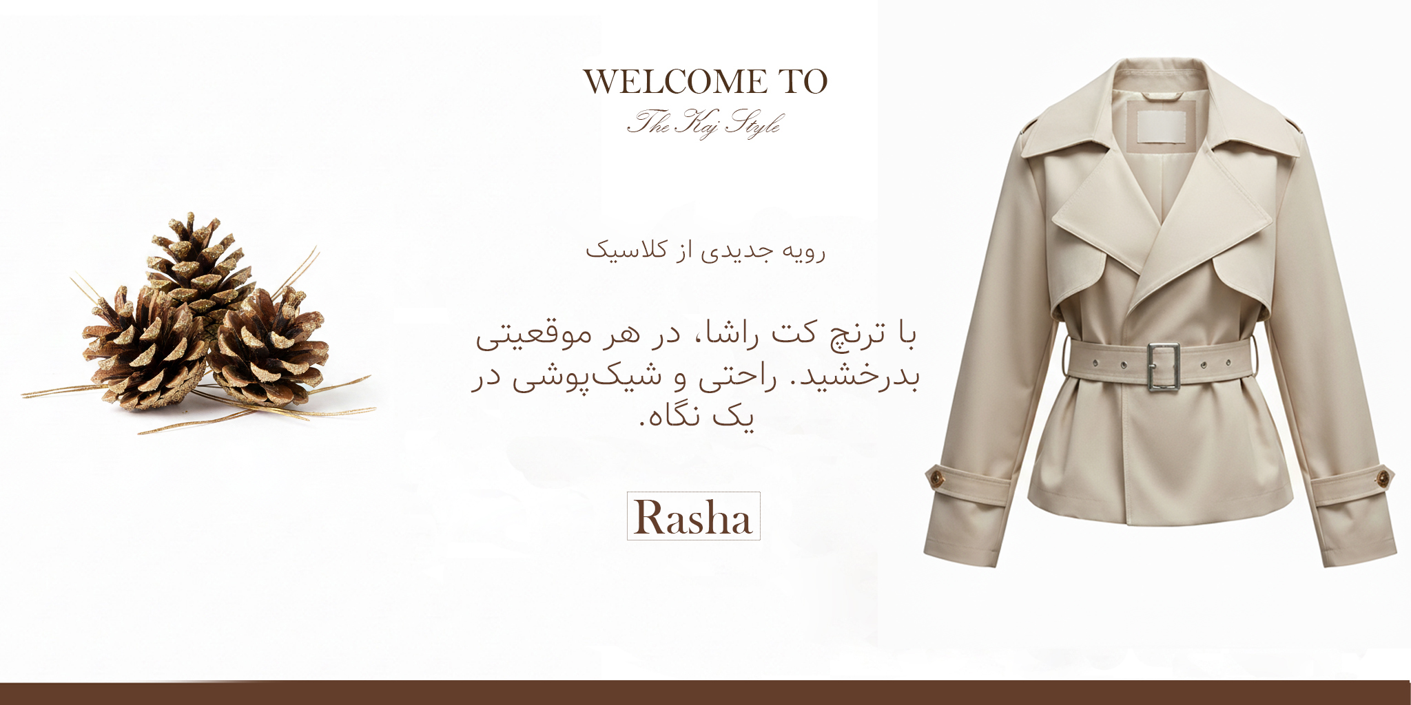 ترنچ کت مینیمال راشا کاج رنگ بژ روشن از جنس پارچه کتان پارکا