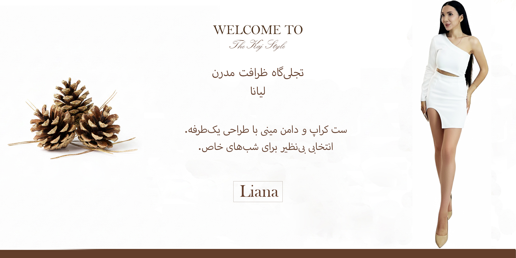 ست دوتکه کراپ تاپ تک آستین و دامن مینی نامتقارن لیانا کاج - جنس کرپ پلاتینیوم
