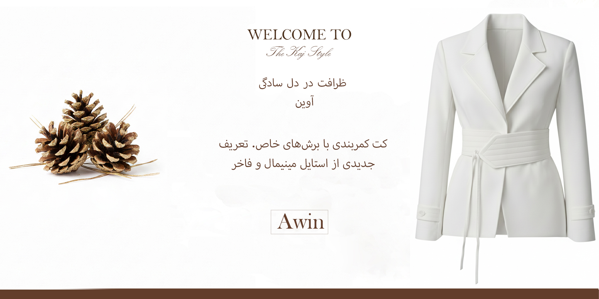 کت سفید مجلسی زنانه با کمربند متصل و قابل جدا شدن ئاوین کاج - جنس کرپ پلاتینیوم