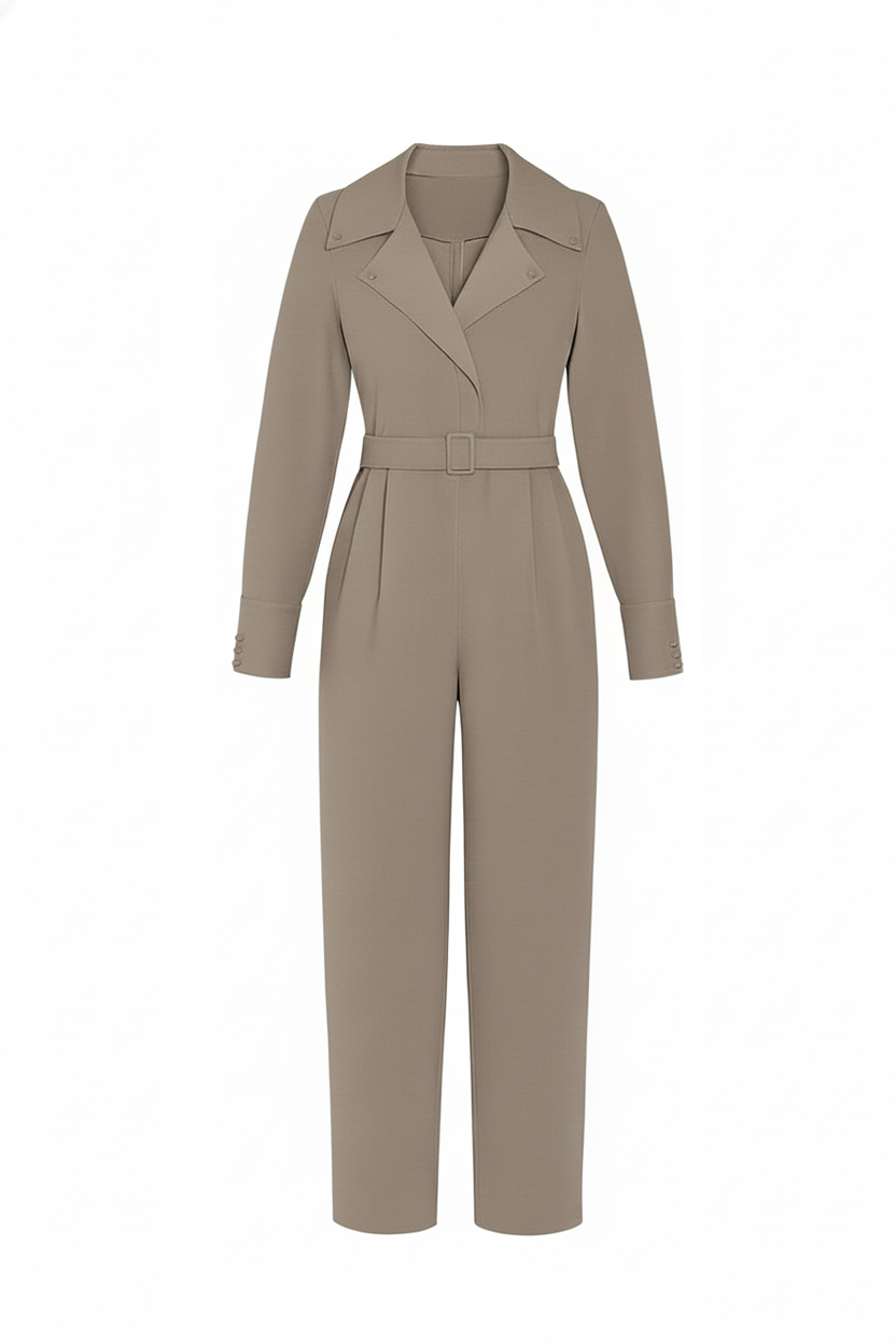 رامپر (سرهمی شلوارکی) لینن کمربند گرهای آستین پفی نیوان کاج از جنس پارچه لینن