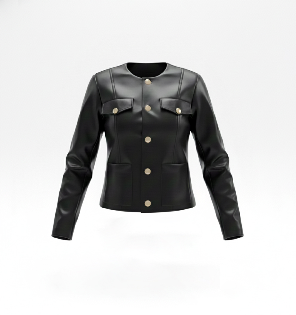 کت چرم مینیمال واران رنگ مشکی از جنس چرم با دکمههای طلایی فلزی