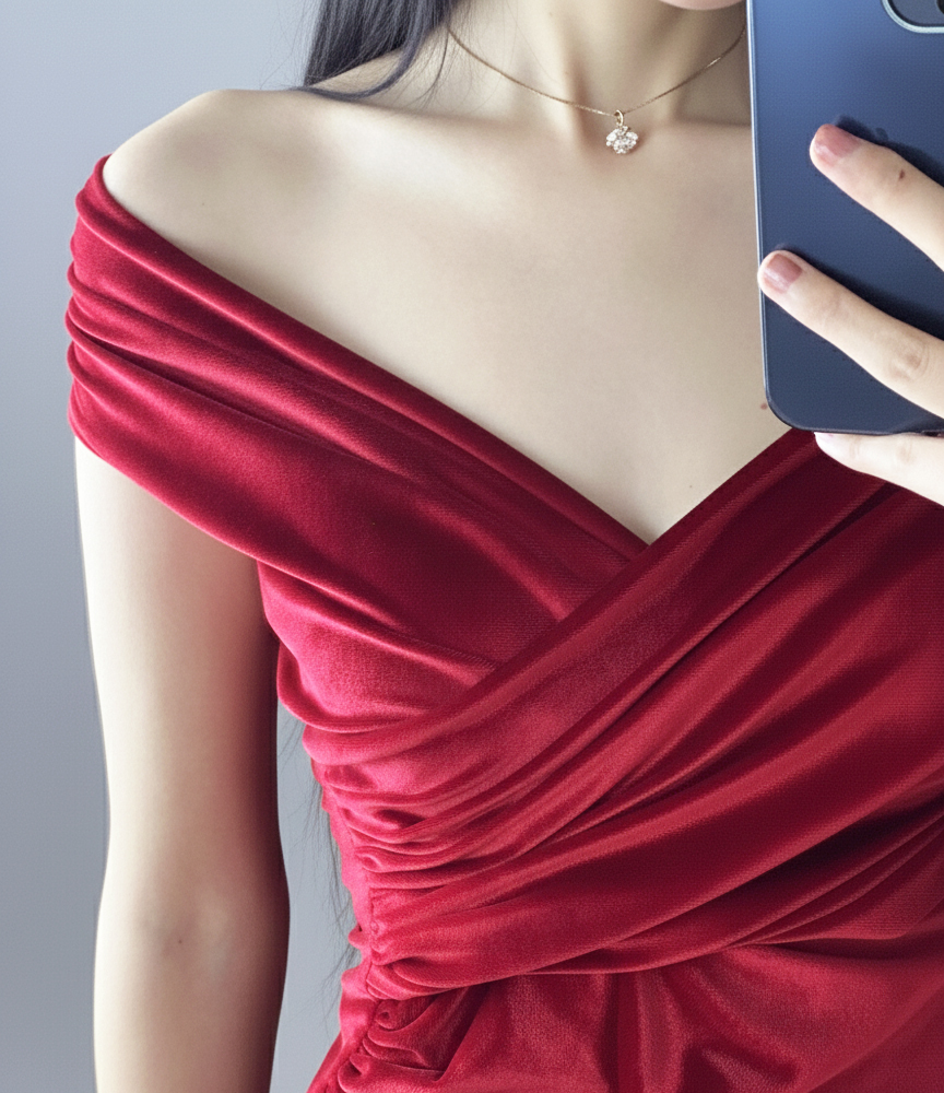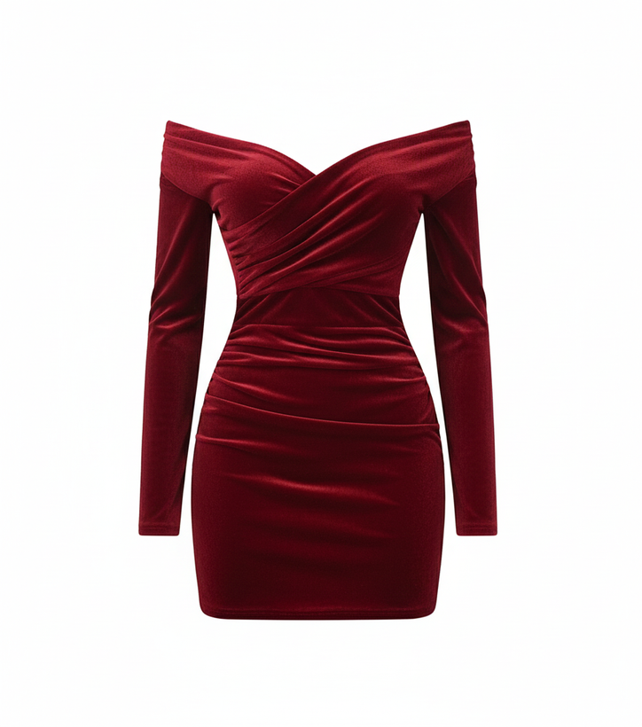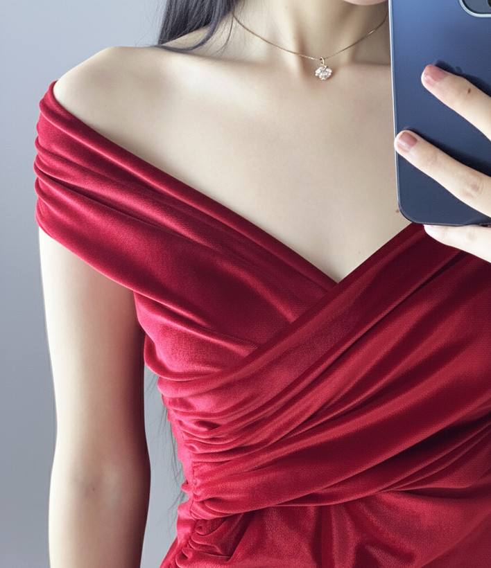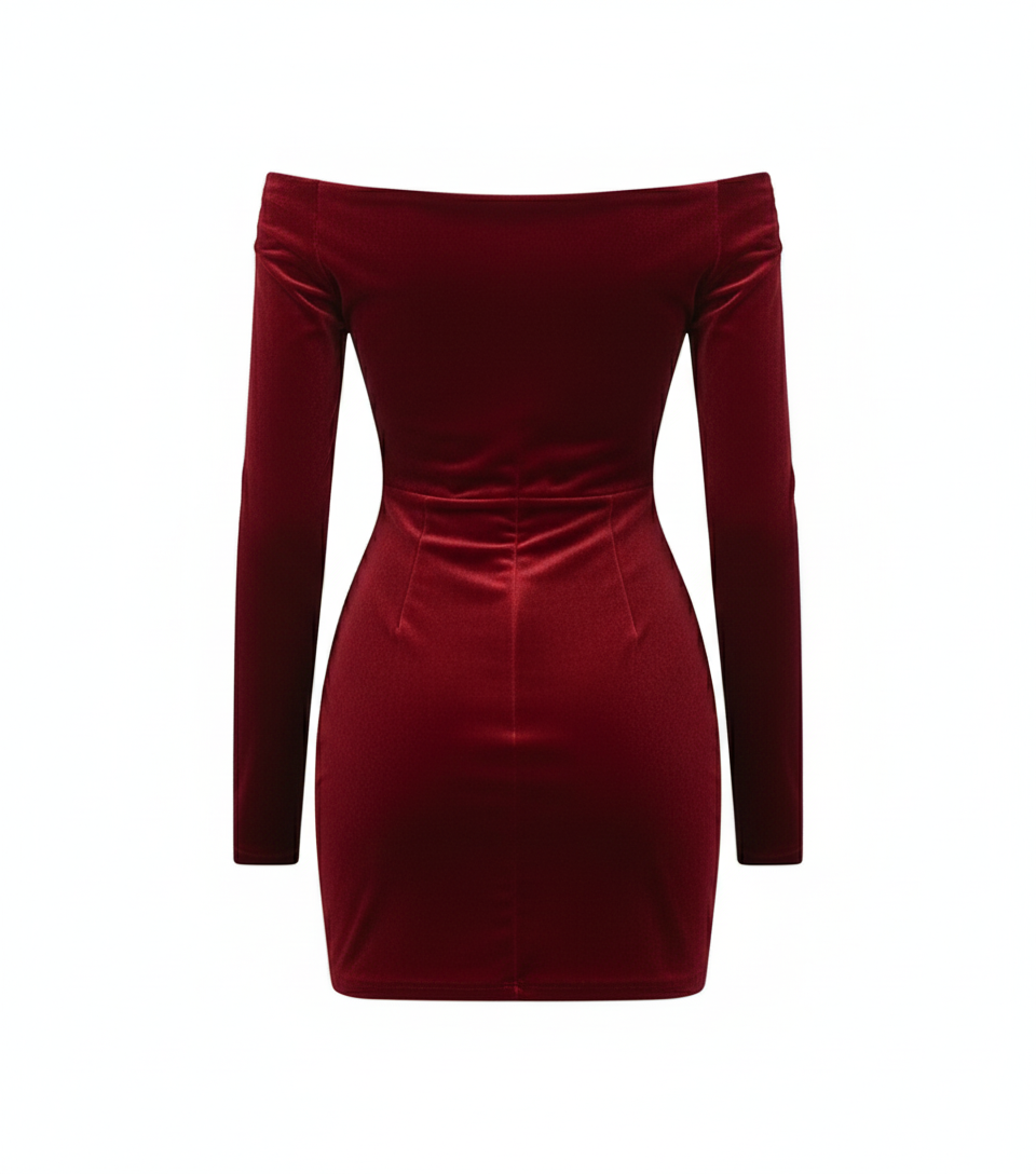 پیراهن مخمل کوتاه آستین‌جداشونده روژ کاج رنگ قرمز و از جنس پارچه مخمل کشی