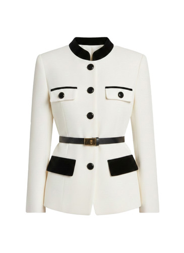 کت کلاسیک "نوبل" ترکیب رنگ سفید و مشکی از جنس کرپ باربی با جزئیات مخمل