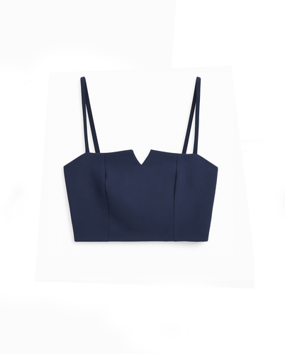 کراپ تاپ فشن " زیوا کاج " رنگ طوسی و از جنس پارچه کرپ مازراتی