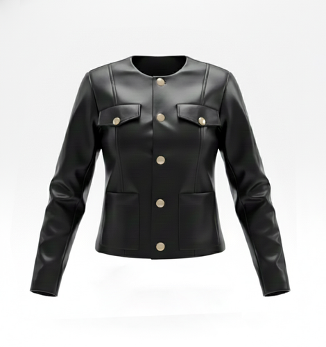 کت چرم مینیمال واران رنگ مشکی از جنس چرم با دکمههای طلایی فلزی