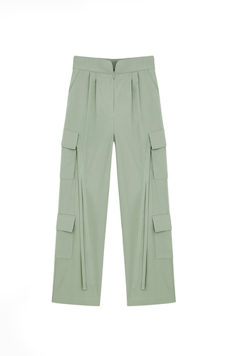 ست کراپ تاپ گرهای و شلوار کارگو کژوال شیلان کاج - جنس لینن
