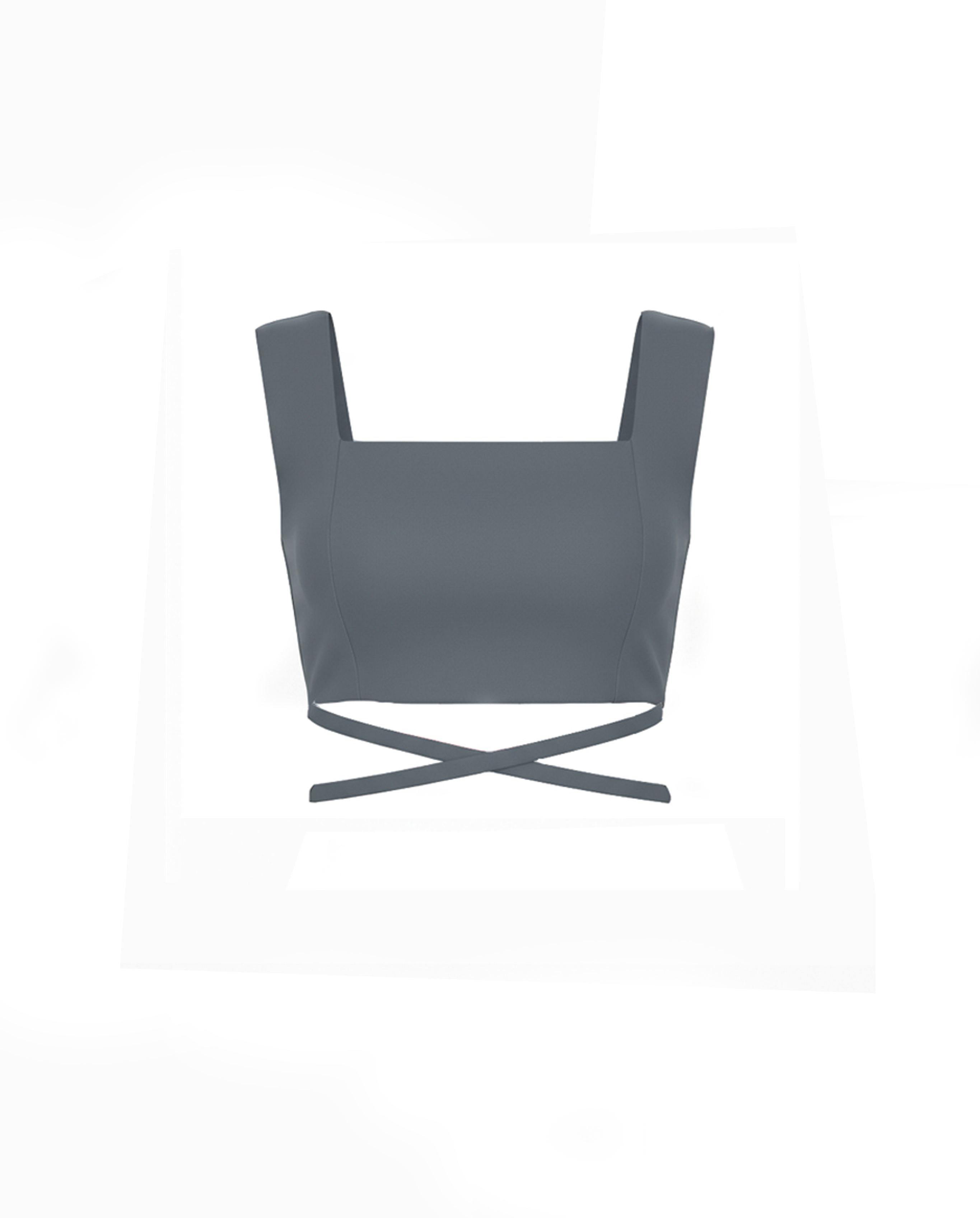 کراپ تاپ فشن " زیوا کاج " رنگ طوسی و از جنس پارچه کرپ مازراتی