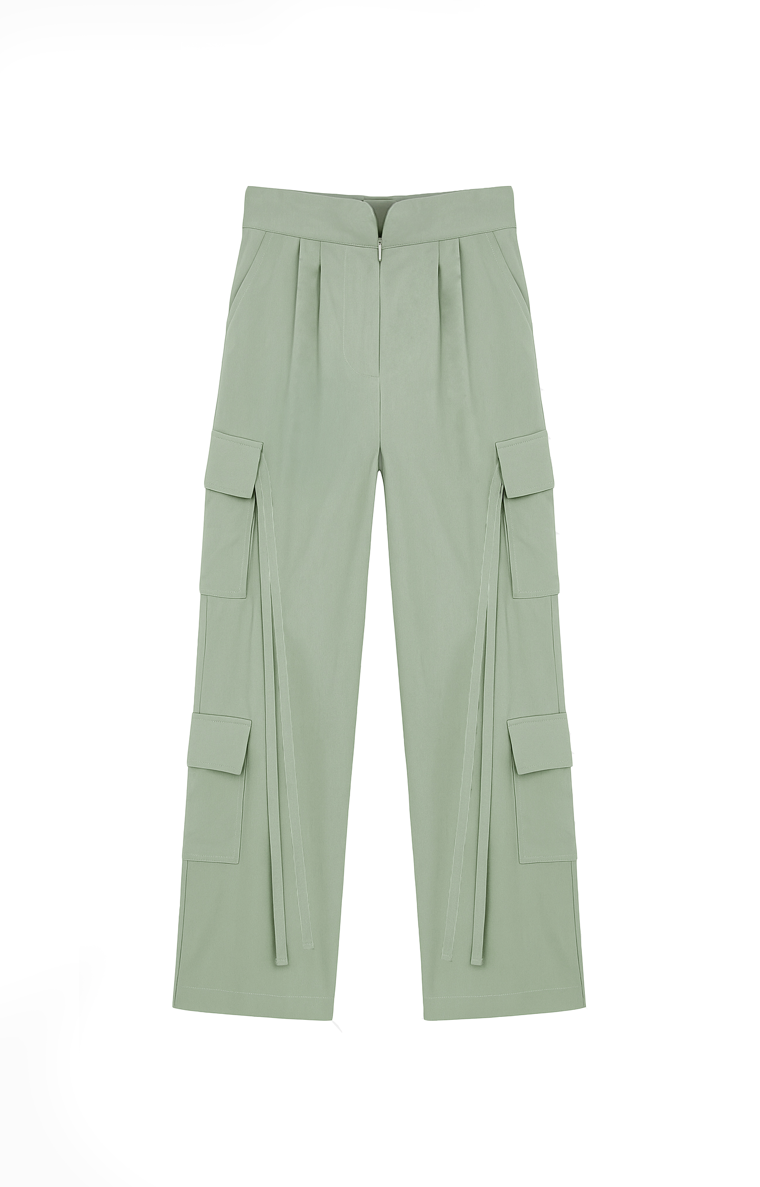 ست کراپ تاپ گرهای و شلوار کارگو کژوال شیلان کاج - جنس لینن
